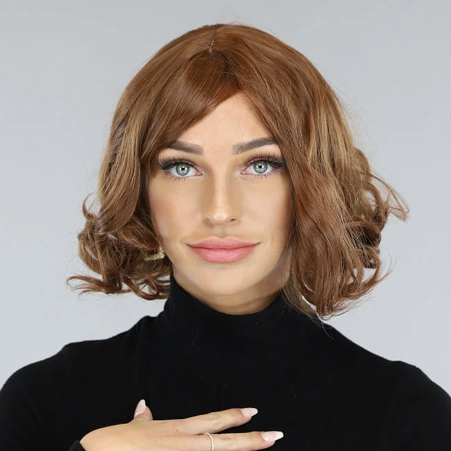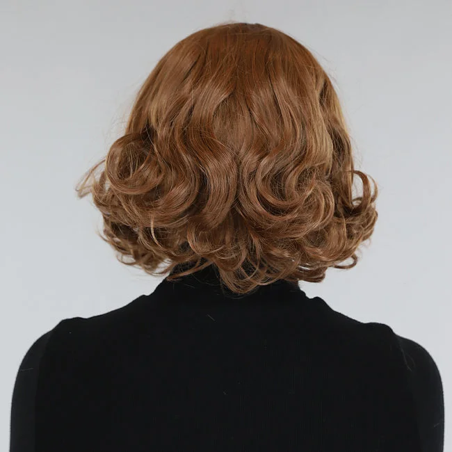 Bruine Korte Golvende Pruik met Pony