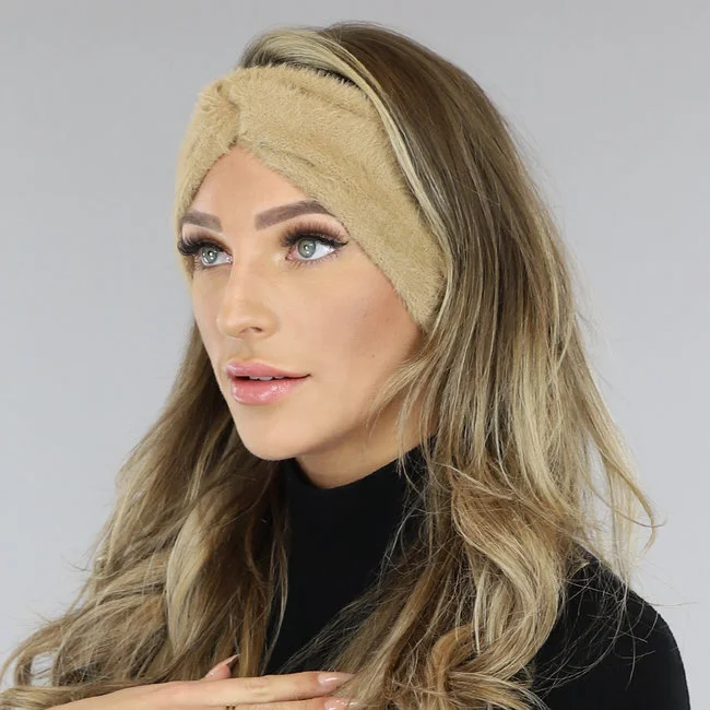 Camel Fluffy Haarband Met Knoopdetail