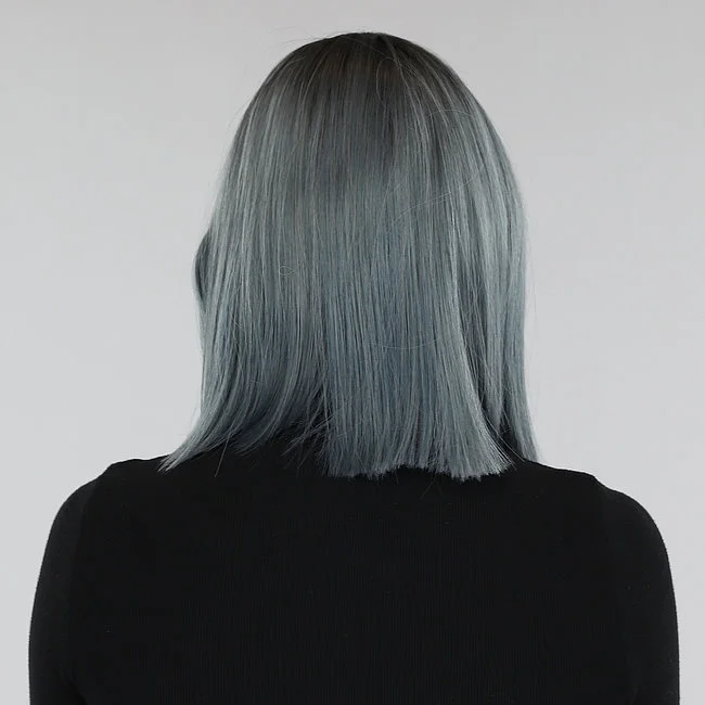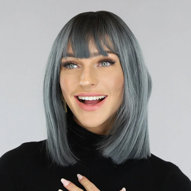 Grijs/Blauwe Korte Steile Pruik met Bob