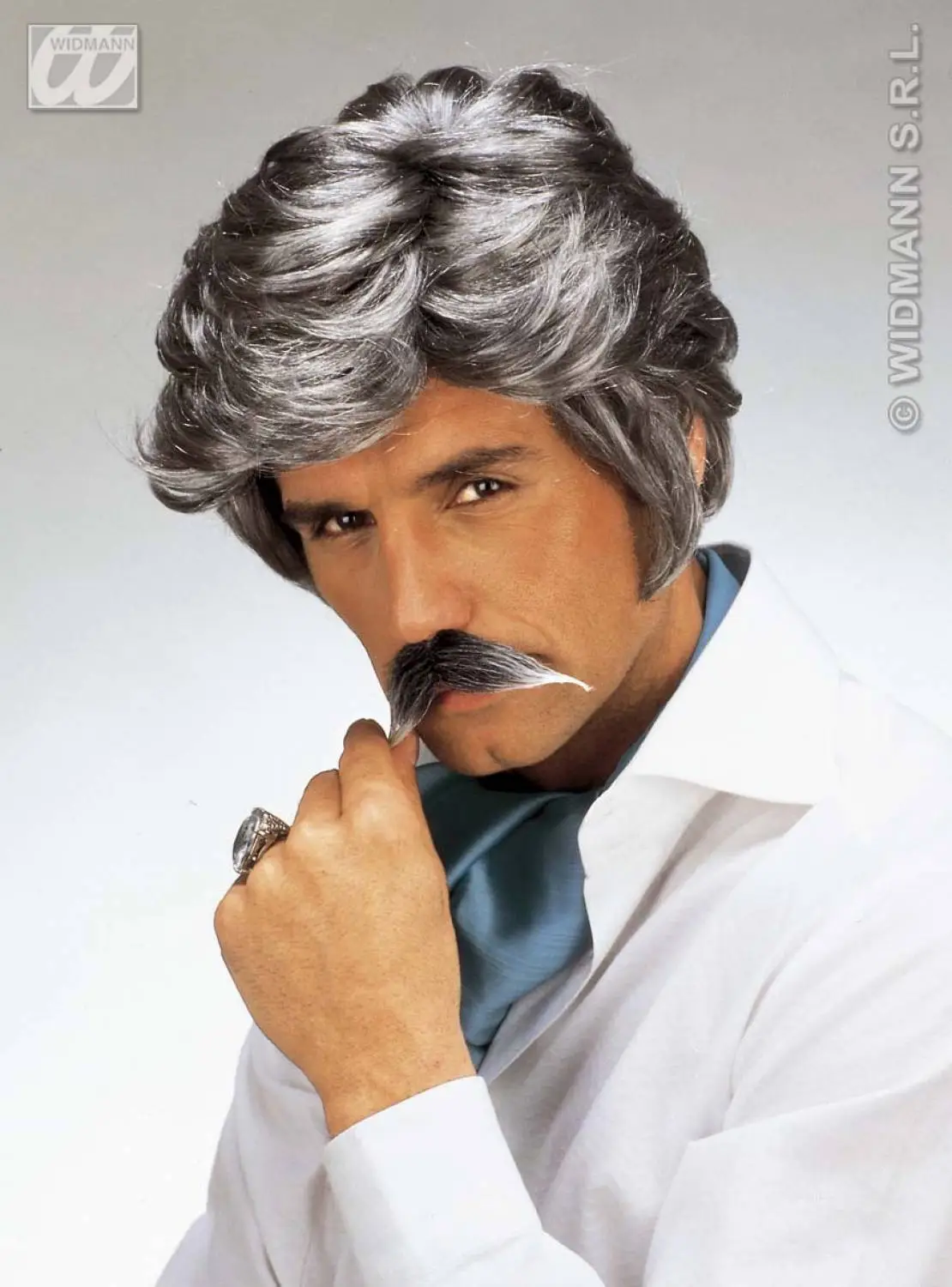 Grijze playboy pruik met snor