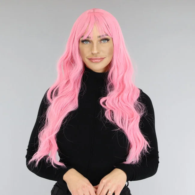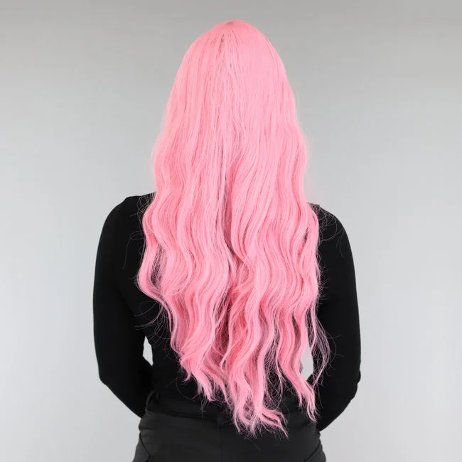 Wil jij ook wel eens een andere look creëren zonder je eigen haar te verven? Dan is dit de ideale oplossing! Deze mooie synthetische pruik heeft een lichtroze kleur. De pruik heeft lang golvend haar met laagjes en is voorzien van een midden scheiding. Ook heeft de pruik een rechte pony. In de pruik zit een elastisch netje verwerkt waardoor die makkelijk op te zetten is en comfortabel draagt. Deze is ook strakker aan te trekken.