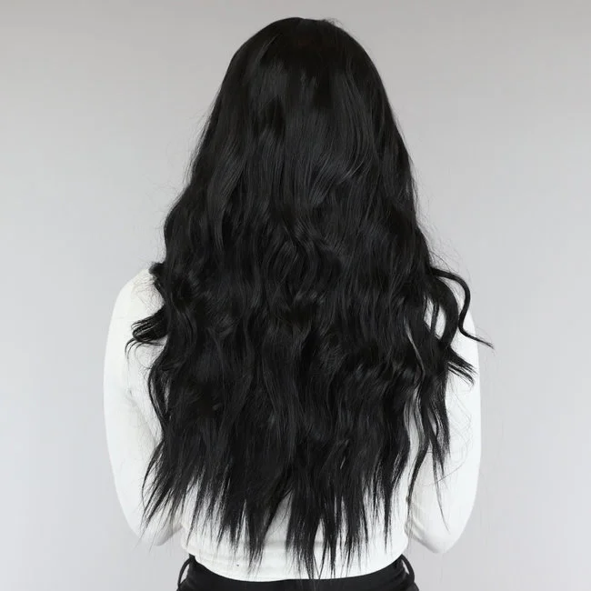 Wil jij ook wel eens een andere look creëren zonder je eigen haar te verven? Dan is dit de ideale oplossing! Deze mooie synthetische pruik heeft een zwarte kleur. De pruik heeft lang haar met een golvende slag en is voorzien van een midden scheiding. In de pruik zit een elastisch netje verwerkt waardoor die makkelijk op te zetten is en comfortabel draagt. Deze is ook strakker aan te trekken.
