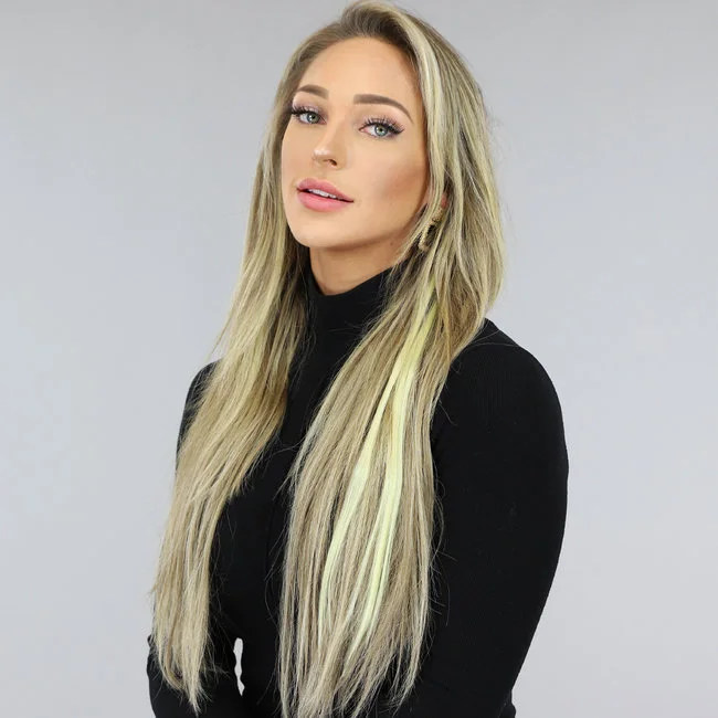 De blonde clip-in extension is ook een leuke en trendy manier om een ​​tijdelijke verandering in uw look aan te brengen. U kunt het bijvoorbeeld gebruiken voor een feestje of evenement, of gewoon om een ​​beetje kleur toe te voegen aan uw dagelijkse look.