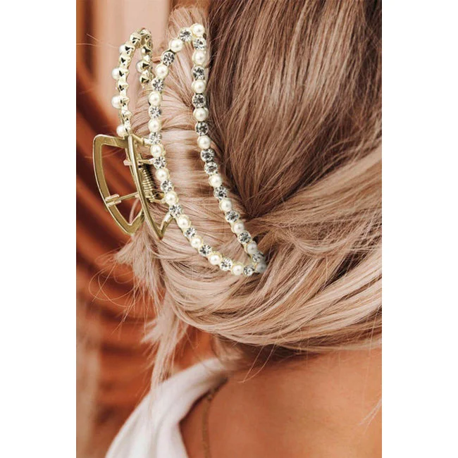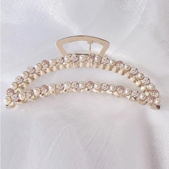 Trefwoorden: haarklem met strass, champagne klem, strass stenen, klem met witte parels, haaraccessoires, accessoires