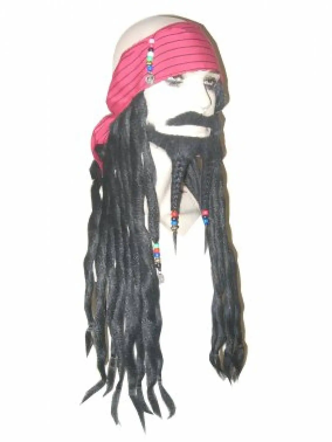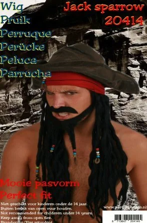 Deze handige piraten haarsetjes pruik is een mooie pruik uit onze collectie pruiken voor bij onze feestkleding en vrijgezellen feestkleding. Voor het samenstellen van je vrijgezellenavond garderobe vind je hier zeker een mooie bij passende piratenpruik. Al onze pruiken zijn tegen snelle ontbranding geïmpregneerd en dus velig, zelfs op de wildste vrijgezellenparty’s.