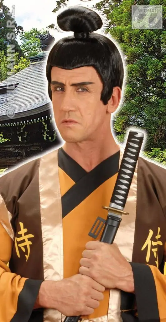 Deze Japanse samoerai met knotje pruik is super leuk voor een vrijgezellen avonden. Het grote vrijgezellenfeest voorafgaande aan de trouwdag verdient een extra aankleding. Met deze speciaal voor henparty’s en vrijgezellen avonden geselecteerde feestkleding kun je voor elk thema wel iets vinden. Het is natuurlijk de bedoeling dat de aanstaande bruid of bruidegom nog even goed voor joker loopt met zijn knotjes pruik.