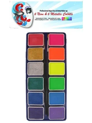 Mooie sets grimeer en schminkverf vind je hier in ons assortiment. De schmink wordt professioneel gebruikt en is uitvoerig getest op effecen voor de huid. Deze schmink irriteert de huid niet en is luchtdoorlatend. Aqua schmink laat zich goed en snel verwijderen met zachte zeepproducten zoals babyzeep. De sets zijn in allerlei kleuren samenstellingen te krijgen. Er zijn aqua schminks, metallic kleuren, zachte pastelkleuren en heldere neonschminks. Met deze schminken grimeersets kunt u mooie schminkcreaties realiseren. Voor een super schminkresultaat raden wij u aan om een van onze grimeerboeken erbij te kopen. Hierin staan schminkvoorbeelden die u zelf gemakkelijk kunt maken langs een duidelijke stapsgewijze handleiding. Idee, dDeel uw creaties eens op onze facebook pagina.