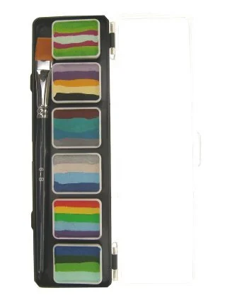 Deze waterverdunbare splitcake schmink is in tal van kleuren verkrijgbaar. Deze schmink is zeer gemakkelijk aan te brengen met een vochtig sponsje of een sponspenceel. De mooiste kleurencombinaties kunnen in een keer worden aangebracht. Deze aqua schmink laat zich goed verwijderen met een beetje water en een zachte baby-shampoo. Deze splitcake heeft veel verschillende kleuren