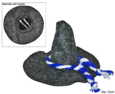 Vrijgezellenhoedje voor de oktoberfeestm periode wordt vastgezet met twee haarspelden.