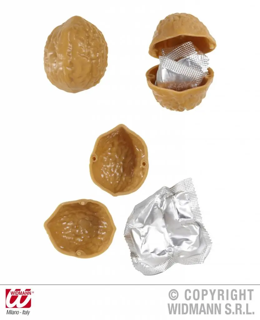Condooms in een walnoot voor vrijgezellen feesten