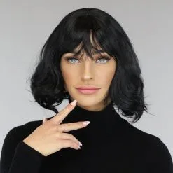 Wil jij ook wel eens een andere look creëren zonder je eigen haar te verven? Dan is dit de ideale oplossing! Deze mooie synthetische pruik is zwart van kleur. De pruik heeft kort golvend haar en is voorzien van een rechte pony. In de pruik zit een elastisch netje verwerkt waardoor die makkelijk op te zetten is en comfortabel draagt. Deze is ook strakker aan te trekken.